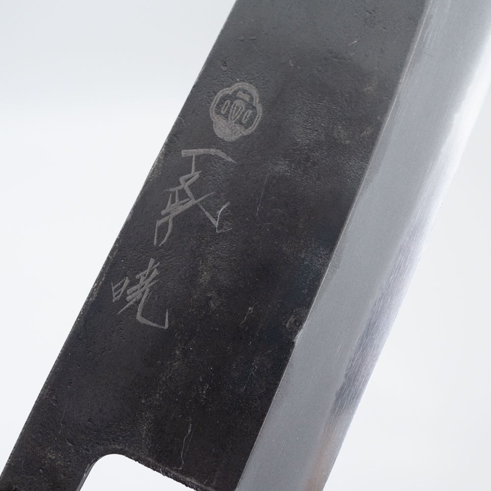 Our Akatsuki series features Blue Steel #2 as its cutting edge core steel. Blue Steel is a high-carbon steel known for its excellent wear resistance and smooth feeling when cutting. Amongst the many kinds of Blue Steel, Blue Steel #2 offers high resistance to chipping, and is easier to sharpen than other Blue Steels like #1 and Super.