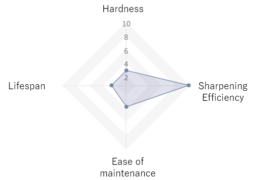 This is a rough stone with has high abrasive ability which is suitable for fixing chips or reshaping a blade.