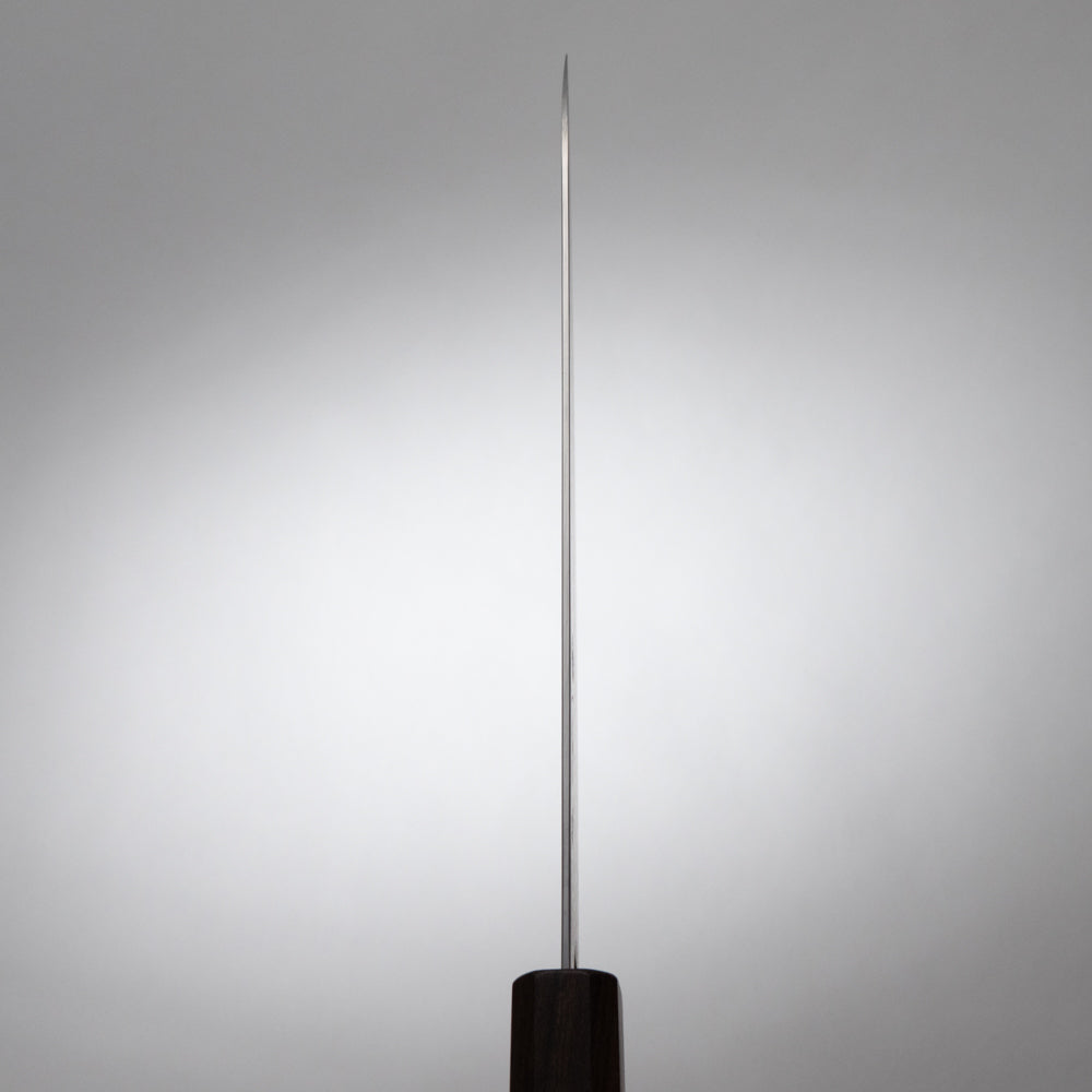 Un cuchillo Wa-Gyuto es un cuchillo de estilo francés con un mango de estilo japonés, familiar para los cocineros japoneses tradicionales. Estos mangos suelen ser octogonales, en forma de D (tipo castaño) o redondos (tipo círculo). Los cuchillos Wa-Gyuto son multiusos y están hechos para carne, verduras y pescado. Esto los convierte en una elección popular entre los chefs de los restaurantes occidentales de todo Japón. Para preparar bloques de carne o cortar repollo en tiras, lo mejor es un Wa-Gyuto de 300 mm. Los de 270 mm también sirven para cocinar si la tabla de cortar es lo suficientemente grande. El de 240 mm es popular entre los profesionales, ya que permite realizar desde tareas de preparación hasta trabajos delicados. Los de 180 mm y 210 mm son populares para uso doméstico, ya que cortan grandes trozos de comida sin mucho esfuerzo.