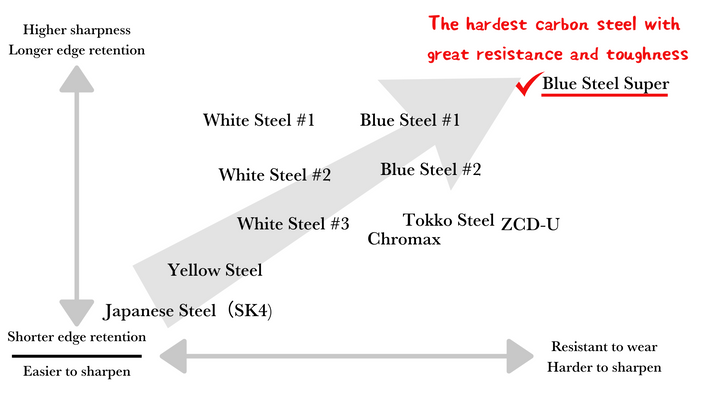 최고급청강은 청1강에 탄소와 바나듐을 첨가하여 제작되어 구조적으로 더 강하고 단단한 칼날을 만들어냅니다. 최고급청강으로 만든 칼은 놀랍도록 날카롭고 날 유지력이 깁니다. 그러나 이 단단한 강철은 연마하는 데 시간이 걸리고 취성 위험으로 인해 신중한 사용이 필요합니다. 칼을 잘 사용할 줄 알고 새로운 수준의 날카로움을 경험하고 싶은 분들에게 추천하는 놀라운 절단 경험입니다.