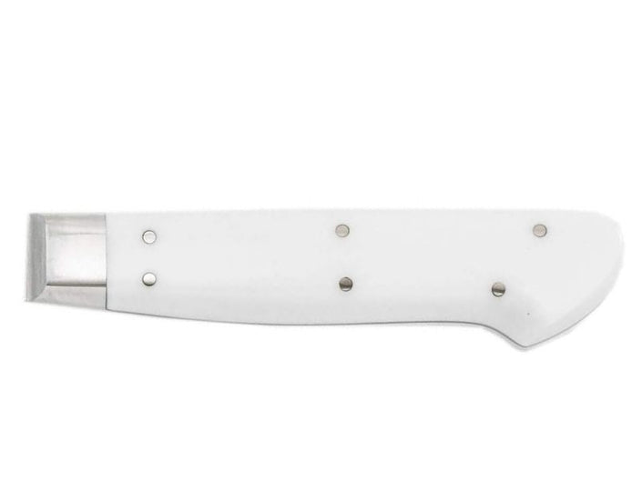 The handmade finish combines a sophisticated design with excellent craftsmanship and usability. The handle is made from White DuPont Corian artificial marble, providing excellent durability and heat resistance while minimizing age-related deterioration over long periods of use. Extra levels of polishing over multiple processes are applied to create smooth curves in the handle, making it comfortable for human hands to hold for long periods of time without muscle strain.
