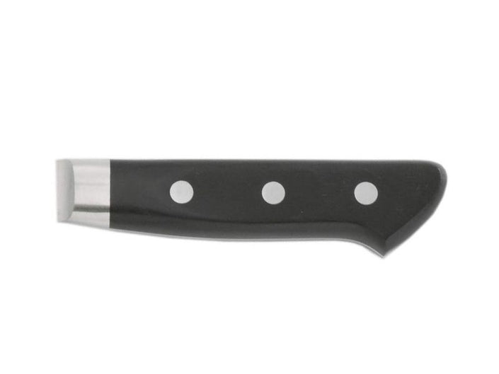 這種手柄由耐用的壓縮膠合板製成,並附有凸緣以提高平衡性。它以非常衛生著稱,因為水不容易進入刀身與手柄之間的縫隙。