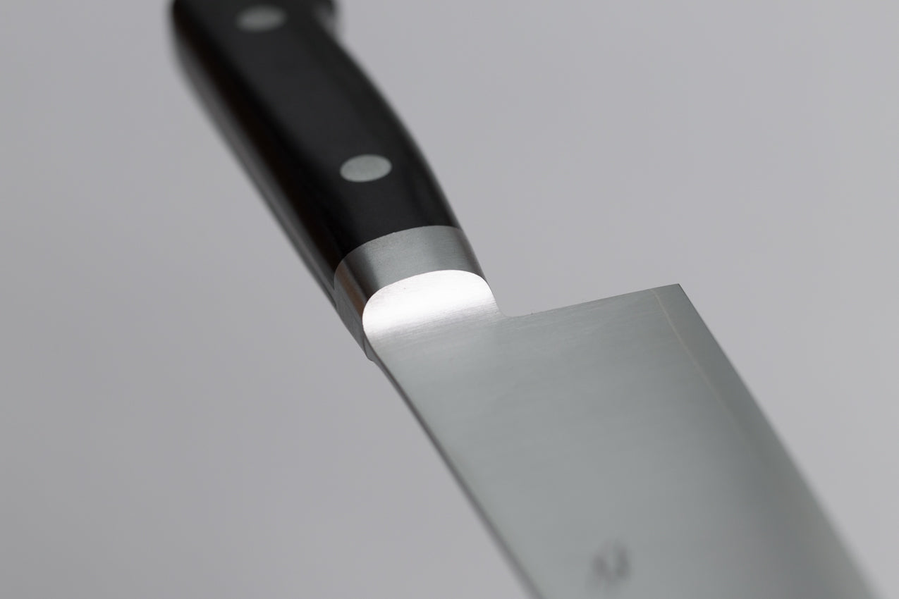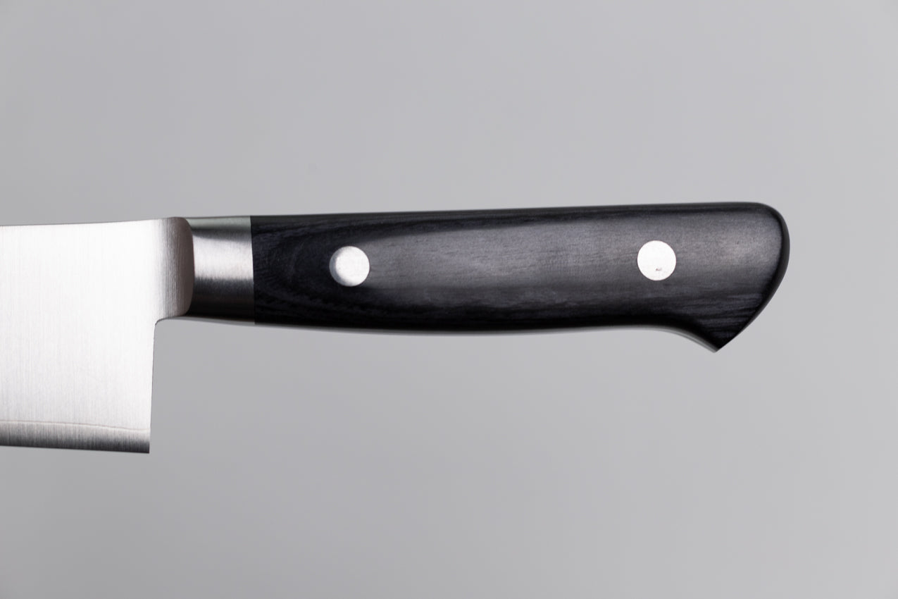 這種手柄由耐用的壓縮膠合板製成,並附有凸緣以提高平衡性。它以非常衛生著稱,因為水不容易進入刀身與手柄之間的縫隙。